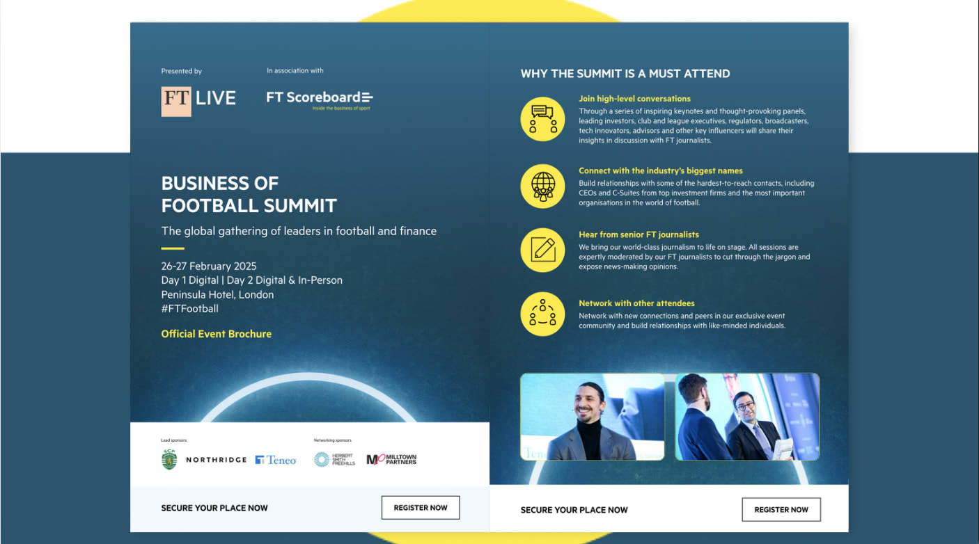 The Business of Football Summit will gather over 300 leading investors, club and league executives, and other key influencers, to share their insights in discussion with FT journalists.